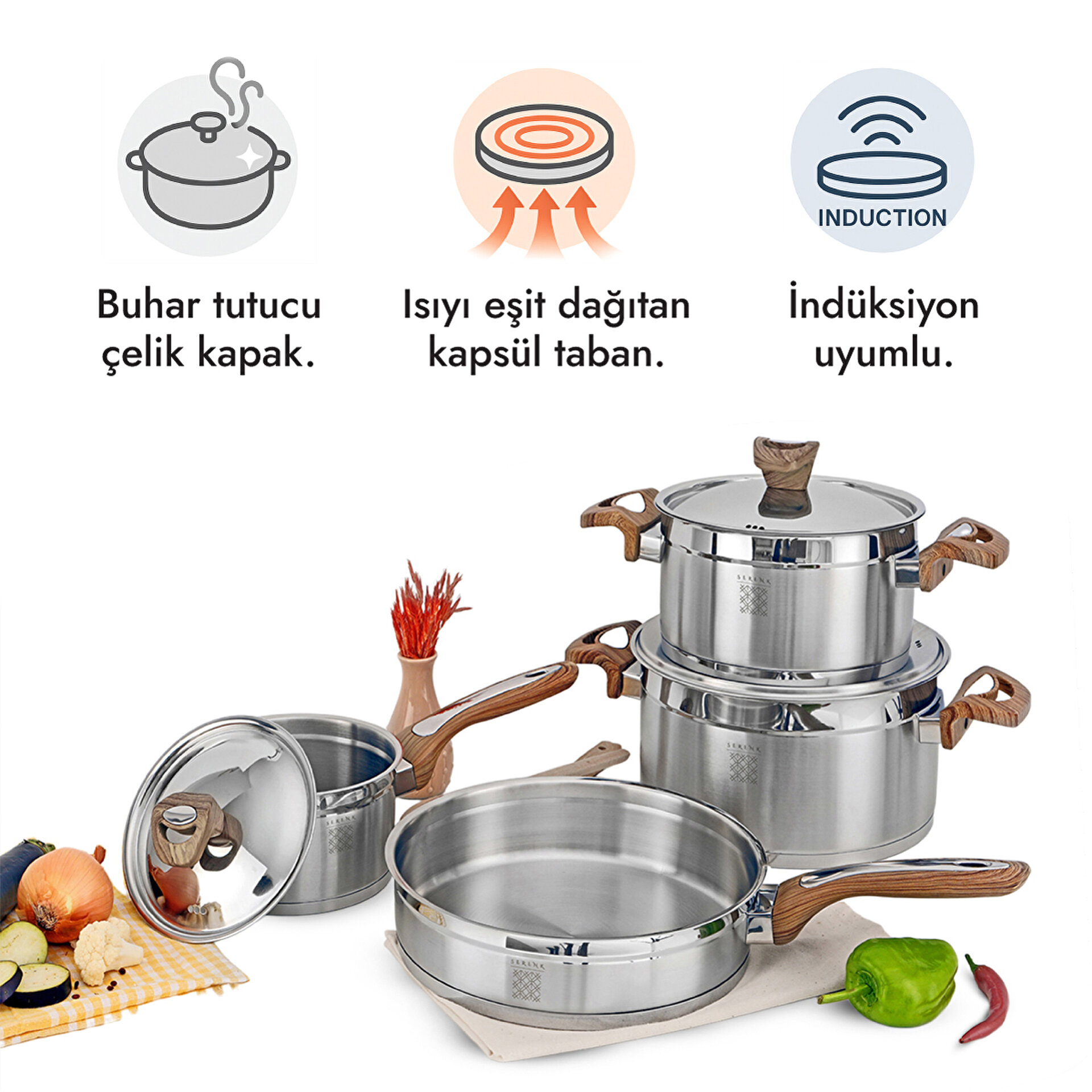 18/10 Paslanmaz Çelik, Polisaj Yüzey, Özel Kapsül Taban.